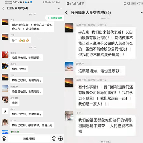 1月20日,景區(qū)運(yùn)營黨總支、北景區(qū)運(yùn)營黨支部帶領(lǐng)支部委員組成的慰問小組,專程來到長白山天水酒店疫情防控集中隔離點(diǎn)進(jìn)行慰問,并為隔離人員送去水果、牛奶、八寶粥等生活物資、慰問品。同時(shí)持續(xù)做到關(guān)心不斷、慰問不停,建立隔離人員慰問群,每日關(guān)心隔離人員狀態(tài),每日上報(bào)隔離人員信息。