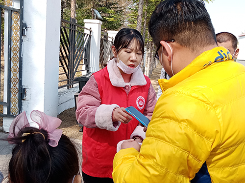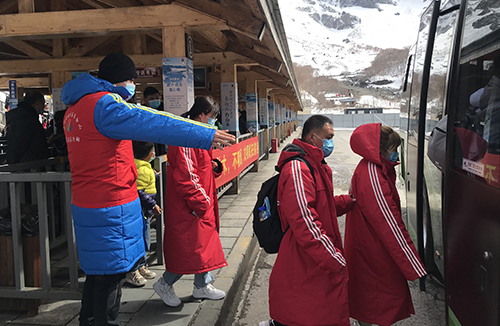 志愿者積極幫助行動(dòng)困難游客,助力圓夢(mèng)大美長白。