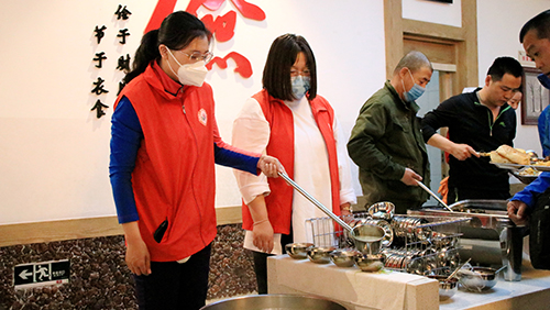 志愿者投身后勤保障,為后勤職工緩解工作壓力。