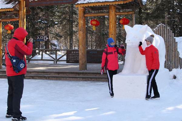 雪娃鬧春、福祿雙全、“豬”運(yùn)亨通、花鼠送福等造型各異的雪雕作品,吸引眾多游客前來游玩,拍照合影。這些雪雕作品全部由公司員工自行設(shè)計(jì)并制作而成,他們起早貪黑,頂風(fēng)冒雪,短短半月時(shí)間就打造出數(shù)種雪雕作品,不僅豐富和活躍了長(zhǎng)白山冬季旅游,更為景區(qū)增添一抹亮麗的冰雪色彩。
