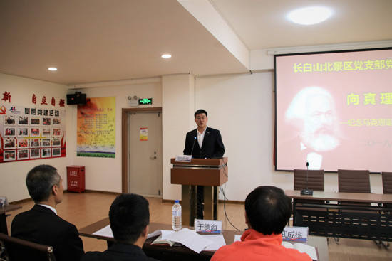 為紀念馬克思為人類解放事業做出的偉大貢獻,不斷深化習近平新時代中國特色社會主義思想的研究與應用,貫徹落實黨的十九大精神,5月16日公司北景區黨支部開展了“向真理致敬——紀念卡爾?馬克思誕辰200周年” 的主題教育活動。活動由北景區黨支部紀檢委員趙玉東主持,共有70多人參加。
