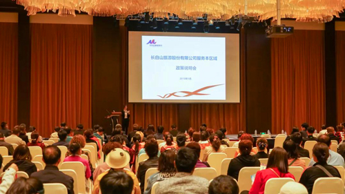 5月28-29日,長白山旅游股份有限公司分別在池北區長白山溫泉皇冠假日酒店(28日)、池西區萬豪大酒店(29日)召開長白山旅游股份有限公司服務本區域政策說明會。參加會議的有長白山旅游股份有限公司董事會秘書安國柱先生、公司各版塊負責人及長白山地區餐飲、酒店、旅行社、特產行等行業代表,兩會參會人員共計700余人。