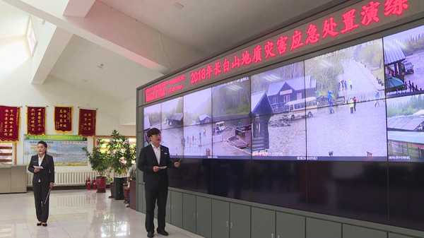 首先,講解員向參加觀摩的各位領導介紹此次演練目的、參加觀摩單位、參演人員及物資情況。隨后,演練現場總指揮,股份公司景區運營部、天池企業管理公司總經理孫青春,一邊通過手中的對講機下達命令,指揮演練進行,一邊與現場兩位講解員通過監視屏幕為觀摩團解說演練內容。
