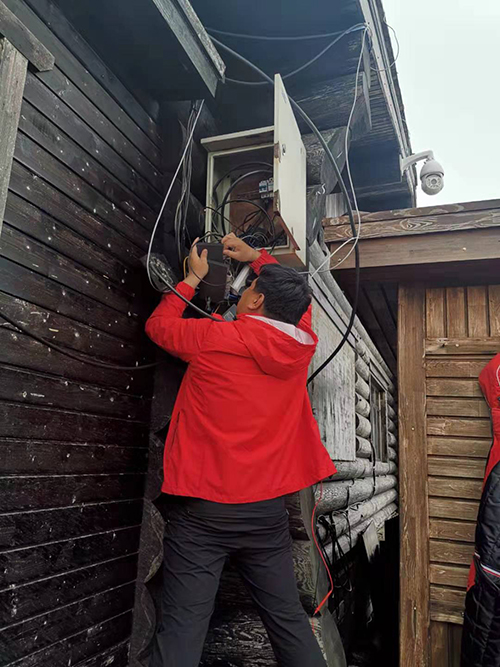特別是在冬季,他們還要頂住刺骨的寒風(fēng)和冰雪的洗禮。一個(gè)小小的室外故障,往往都需要用幾個(gè)小時(shí)挖開(kāi)堅(jiān)硬的冰雪凍層,才能進(jìn)行維修。2019年1月24日,主峰光纖傳輸線路出現(xiàn)故障,他們第一時(shí)間扛起維修工具,從海拔2600多米的主峰開(kāi)始往山下測(cè)尋斷點(diǎn),他們邊走邊挖、邊挖邊測(cè),在厚厚的積雪中深一腳淺一腳地行走了7公里,飛舞的雪花染白了他們的衣帽,潔白的冰霜掛滿(mǎn)了他們的眉睫,遠(yuǎn)遠(yuǎn)望去,宛如一個(gè)個(gè)會(huì)活動(dòng)的雪人。最終,他們?cè)谝粋€(gè)積雪兩米多深的山坳處,鎖定了斷點(diǎn)的位置,他們用尖鎬刨開(kāi)了厚厚的冰雪凍層,運(yùn)維工程師徐澎成跪在雪地上,赤手進(jìn)行維修作業(yè),當(dāng)時(shí)的氣溫零下30多度,寒風(fēng)像針一樣刺進(jìn)了他的指骨,盡管手腳已被凍得麻木,不聽(tīng)使喚,可他們憑借頑強(qiáng)的意志和忘我的工作精神,完成了這次艱苦的搶修任務(wù)。