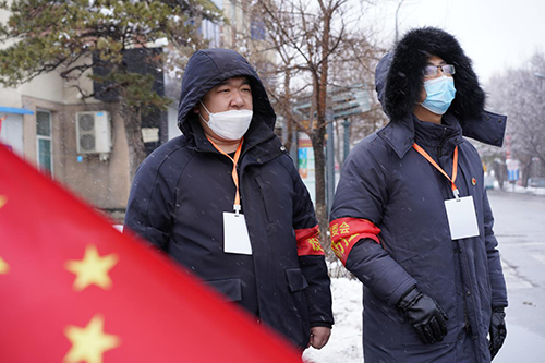 春雪的頻繁拜訪,給志愿者工作帶來(lái)了一些小麻煩,他們像是一個(gè)個(gè)將要融化的雪人,衣服濕了,鞋子透了,水珠夾雜汗水摸著臉頰跌落地上,卻無(wú)法融化志愿者抗疫的信念。他們是戰(zhàn)“疫”的守望者,披上厚大衣,帶上棉手套,穿上保暖靴,口罩遮擋住了他們的面孔,卻不能遮住他們必勝的信心,猶如一顆顆美人松屹立在春雪之中。志愿抗疫這些天,股份公司抗疫志愿隊(duì)堅(jiān)守崗位,守望相助,無(wú)一人叫苦,無(wú)一人掉隊(duì),沒(méi)有絲毫怠慢。